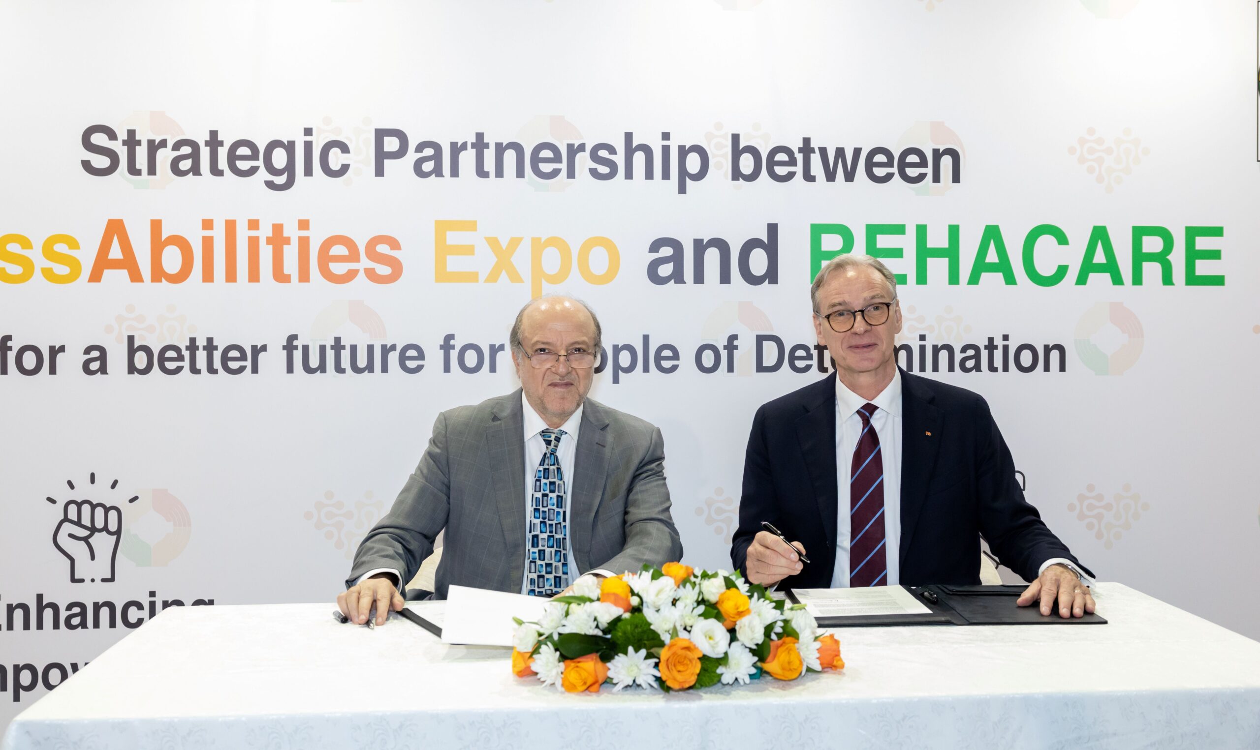 The agreement was signed by Ghassan Suleiman Amhaz, CEO of Nadd Al Shiba PR & Event Management, the owner and organizer of the AccessAbilities Expo, and Wolfram N. Diener, President and CEO of Messe Düsseldorf, the owner and organizer of REHACARE International.